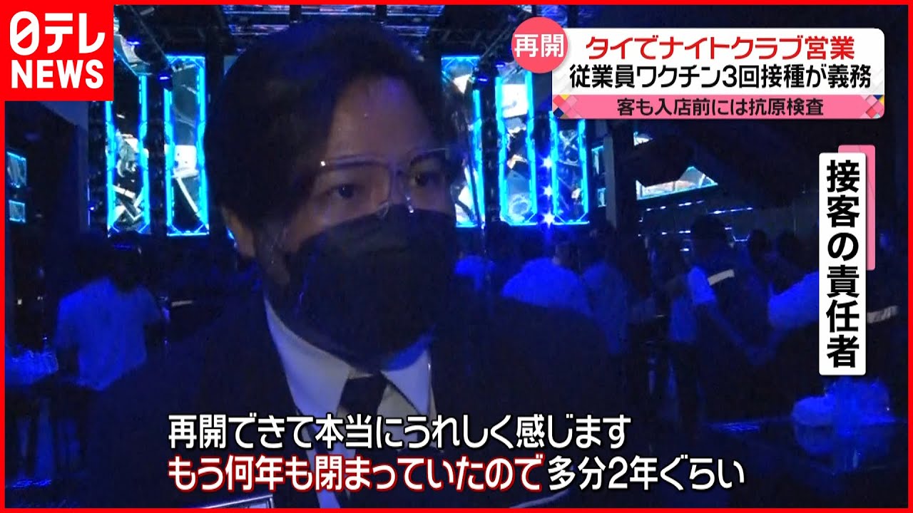 コロナ前は年間およそ4000万人の観光客が訪れていたタイですが、去年はわずか40万人あまり。ナイトクラブの営業再開が観光の起爆剤になればと期待されています。