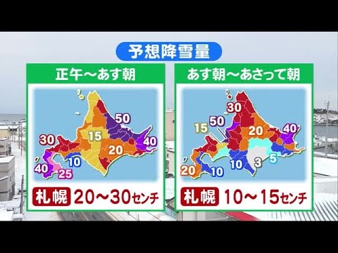 オホーツク海側で50センチ、根室地方や檜山地方で最大40センチの予想です。