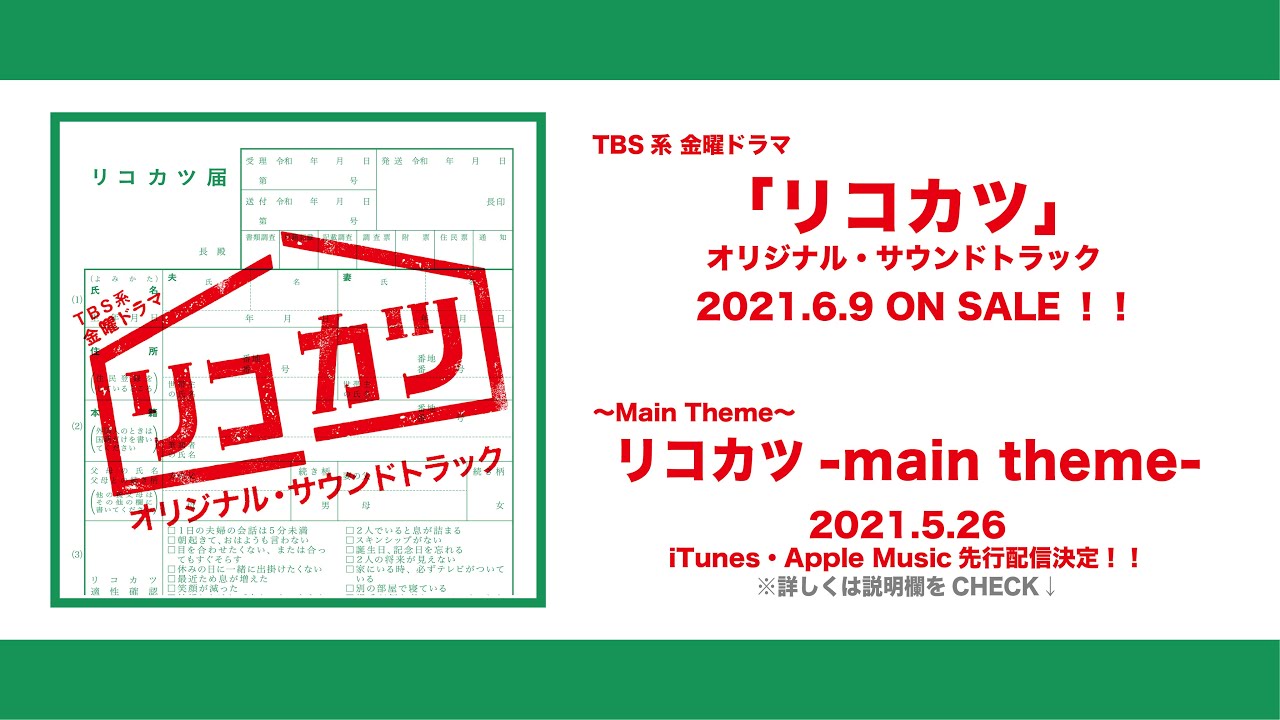 TBS系 金曜ドラマ「リコカツ 」オリジナル・サウンドトラックが発売決定!!発売を記念して、メインテーマをちょっぴり先行公開!!