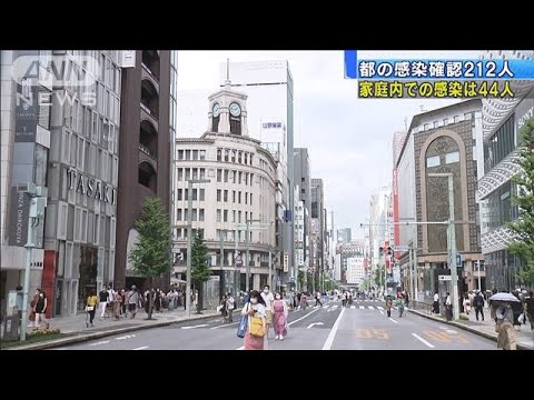 東京都では23日、212人の新型コロナウイルスの感染者を確認しました。このうち家庭内での感染が44人となっています。