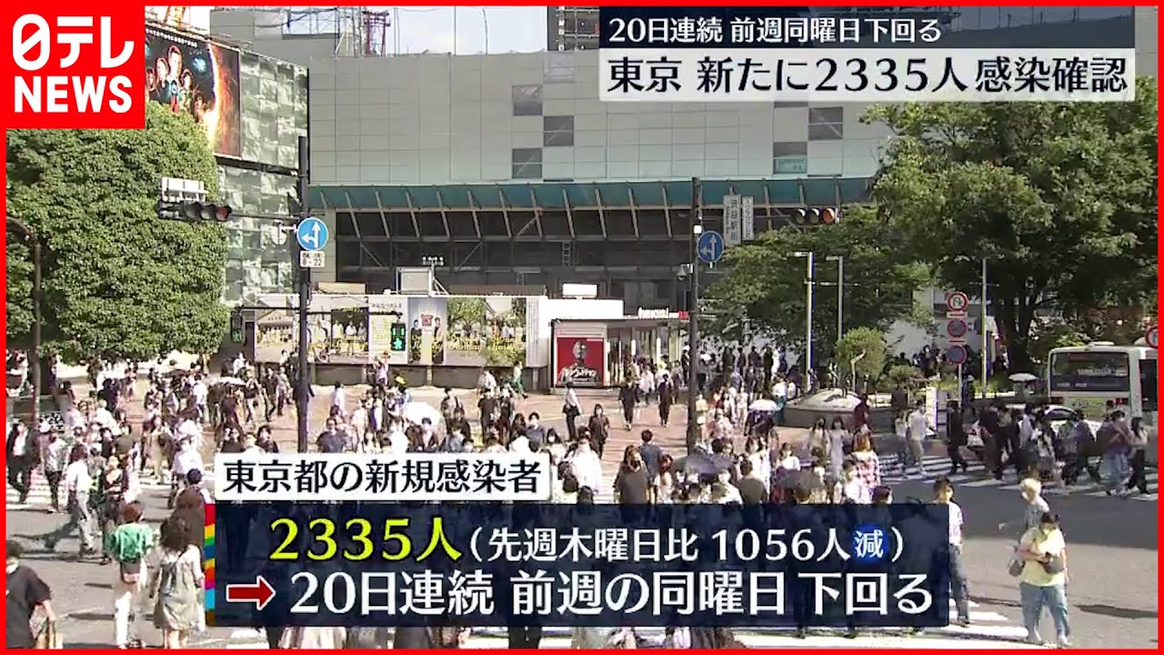 東京都内の新たな感染者は2335人で、先週木曜日から1056人減り、20日連続で前の週の同じ曜日の人数を下回りました。