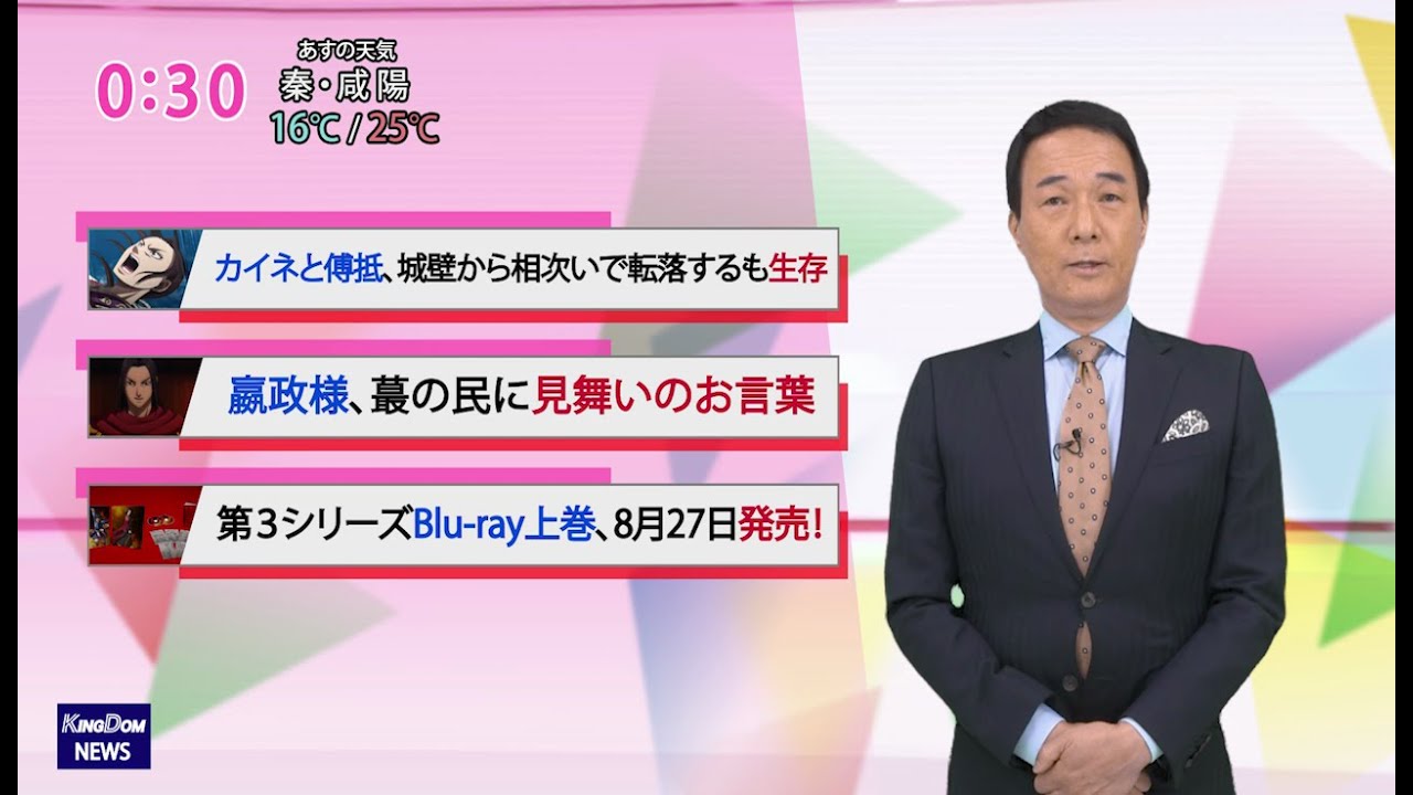 TVアニメ「キングダム」合従軍編の蠢く戦況や最新情報を元NHKアナウンサー宮本隆治がお届け!