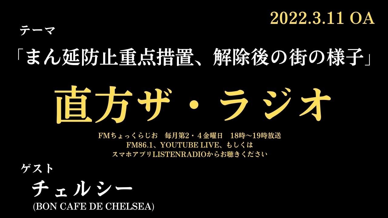 放送はYoutubeLive、FMちょっくらじお(FM86.1MHz)、スマホアプリリスラジから。