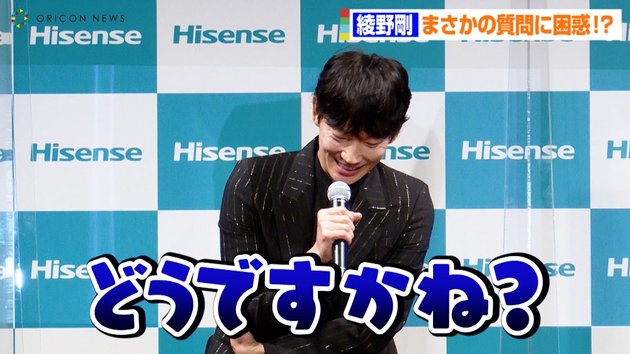 俳優の綾野剛(40)が2日、都内で行われた家電メーカーのハイセンスジャパンの新商品・新CM発表会に参加した。