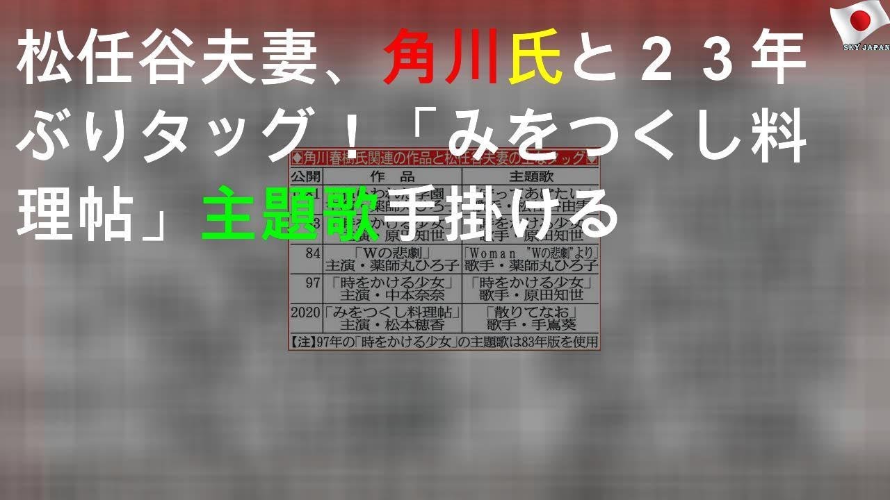 2020年5月11日月曜日 松任谷夫妻、角川氏と23年ぶりタッグ!「みをつくし料理帖」主題歌手掛ける | Nice State #Nice_State 2020年5月11日月曜日NiceStateみをつくし料理帖松任谷夫妻、角川氏と23年ぶりタッグ!「みをつくし料理帖」主題歌手掛ける