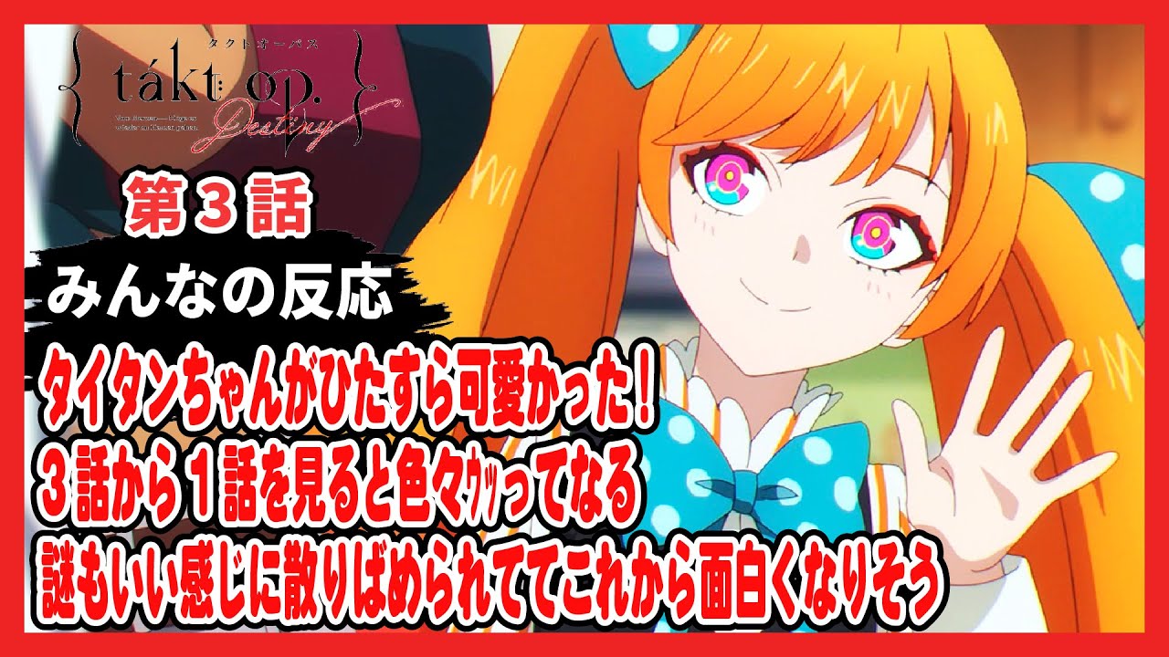 アニメ「takt op.Destiny (タクトオーパス)」3話の掲示板やSNSでの感想・解説・考察などネットの反応をまとめた動画です。