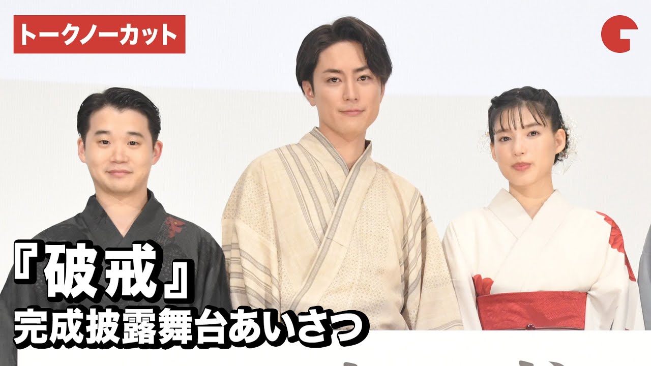 映画『破戒』完成披露舞台あいさつに、間宮祥太朗、石井杏奈、矢本悠馬、前田和男監督が登壇。