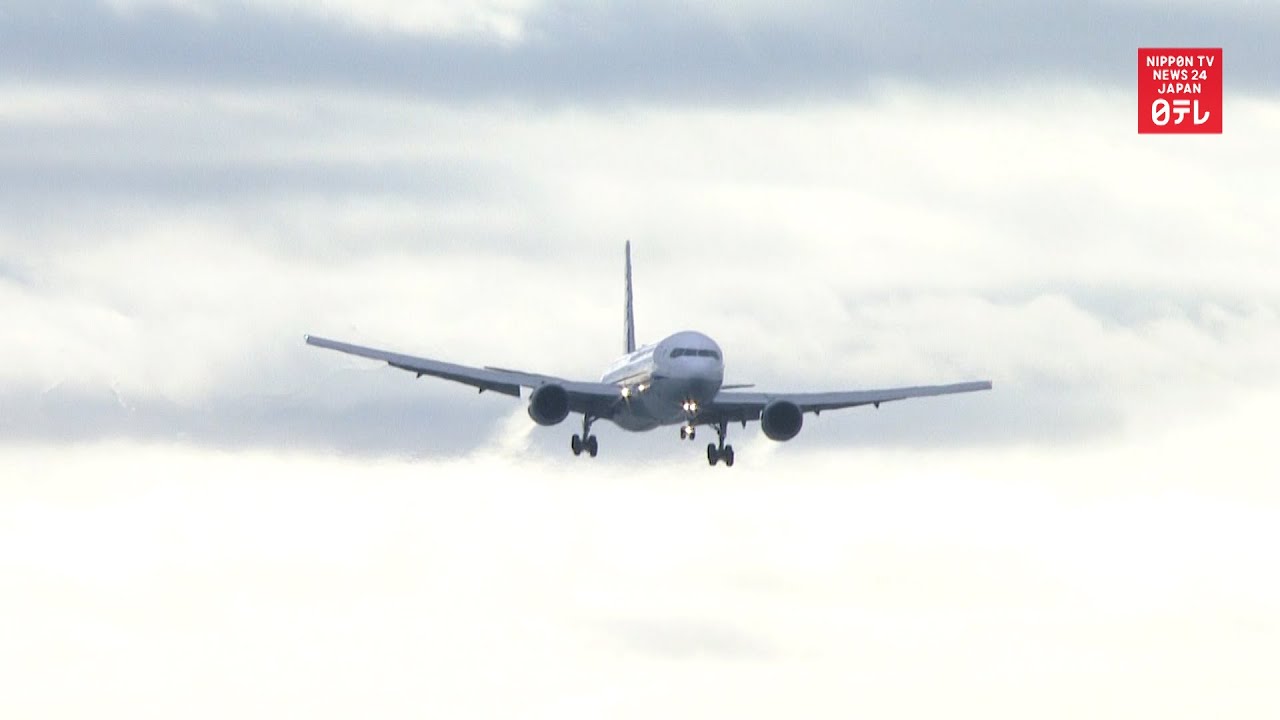 The Japanese government’s third charter flight from Wuhan, China, arrives at Haneda Airport in Tokyo.