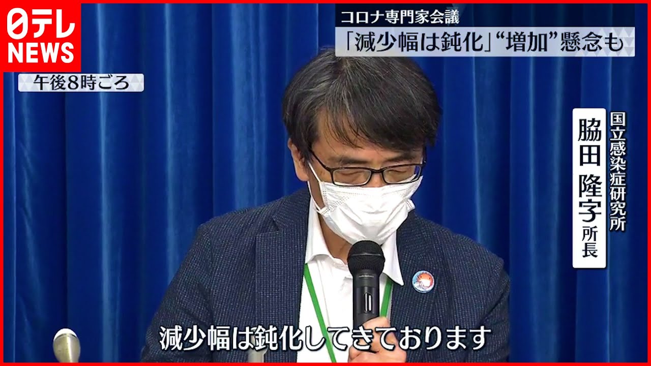 国立感染症研究所・脇田隆字所長「(感染者の)今週先週比でいいますと、0.98ですから減少が続いているけれども、減少幅は鈍化してきております」