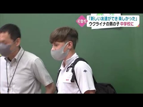 20日、別府市内の中学校に初めて登校したのはことし4月にウクライナから市内に避難してきたストロミン・キリロくん、13歳です。