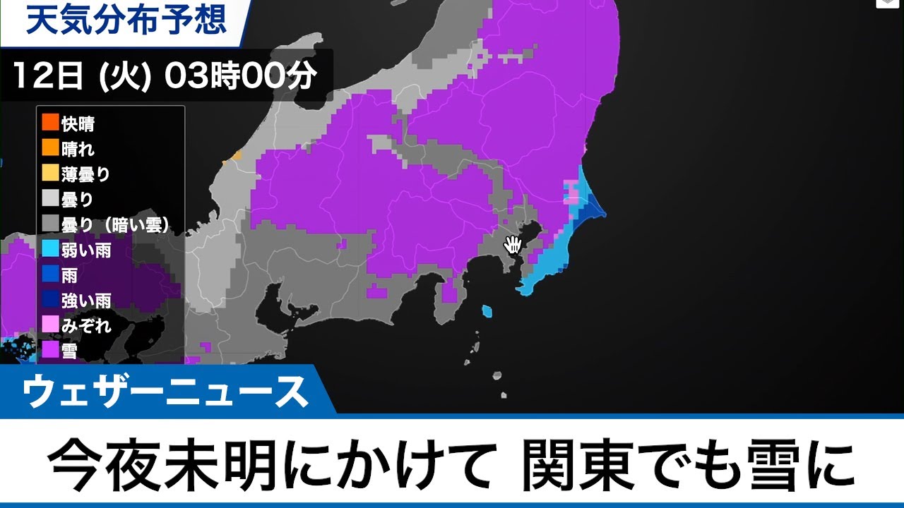 関東の南海上で発生する低気圧の影響で、11日(月)の夜から12日(火)の未明にかけて雨や雪の降りやすくなります。 東京都心では雪が降ったとしても路面に積雪となるほどではなく、社会的な影響はほとんどないとみています。 2020Casterウェザーニュースキャスターゲリラ豪雨ゲリラ雷雨ニュース予報北日本台風台風情報地震大雨天気天気予報情報東日本気象気象予報士減災西日本防災