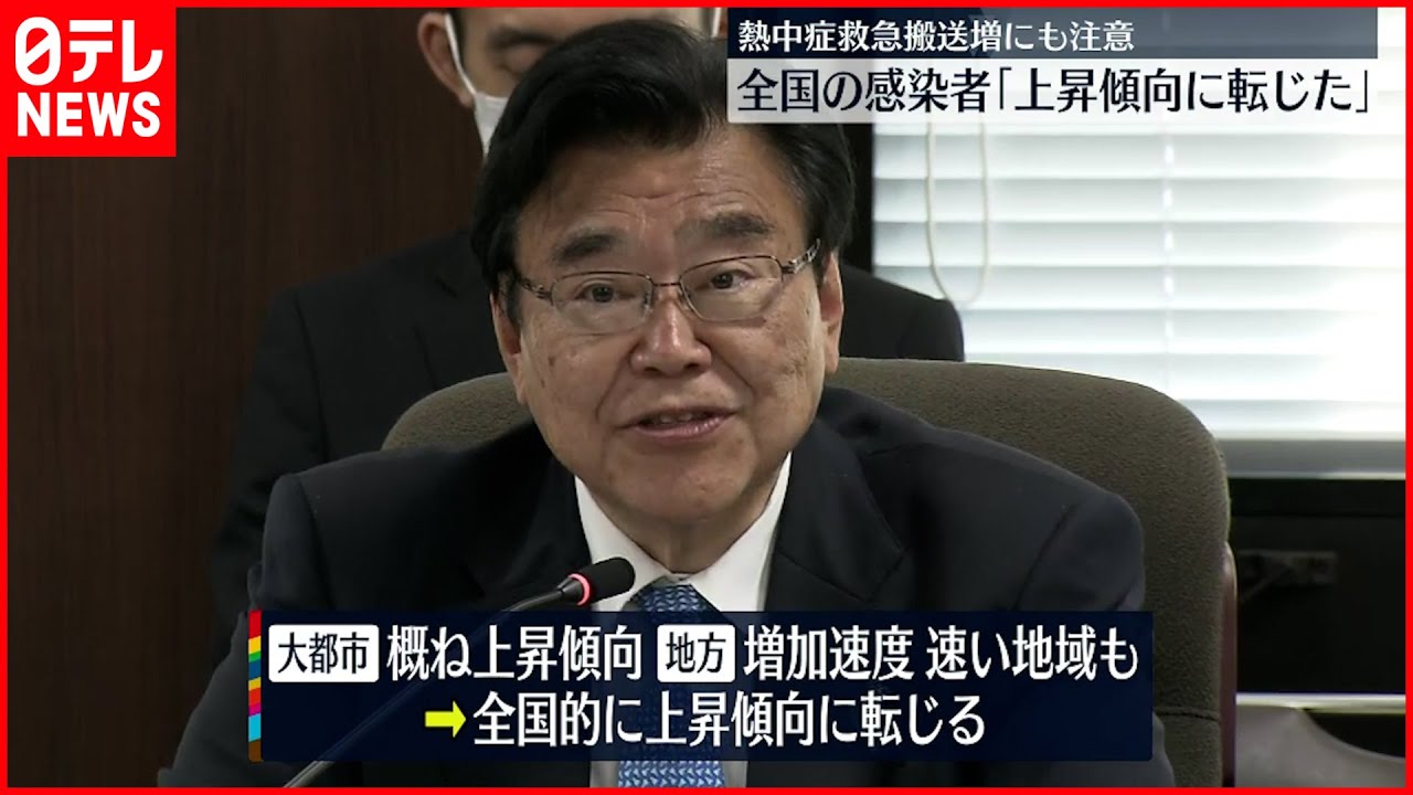 専門家会議は、全国の感染者の今週先週比は1.17となり、大都市はおおむね上昇傾向で、地方では増加速度が速い地域もあり、全国的に上昇傾向に転じたと報告しました。