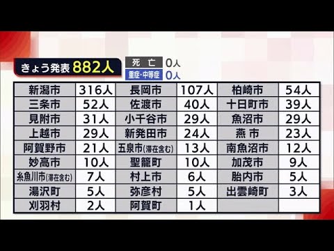 新潟県は6日、新たに新潟市で316人、長岡市で107人など、合わせて882人の新型コロナウイルス感染が発表されました。