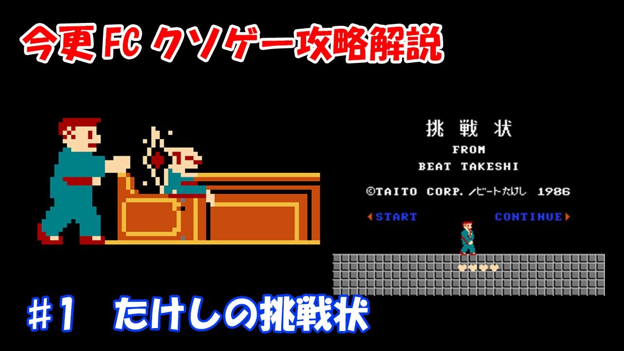 Share Facebook Twitter Pinterest LinkedIn ファミコンのクソゲーを今更ですが攻略解説していきます。 今からクソゲーを始める人への参考になれれば幸いです。 ※当時の記憶とゲームカタログwikiのクソゲー判定を参考にしています。 ひたすらやりこんでから紹介しているので、決して馬鹿にしているわけでは 御座いません。もし紹介したゲームのファンの方が居ましたら申し訳御座いません。 ご理解頂けると幸いです。 チャンネルTOP その他クソゲーマイリスト Twitter クソゲーゲーム攻略タイトーたけしの挑戦状ファミコンレトロゲーム攻略解説