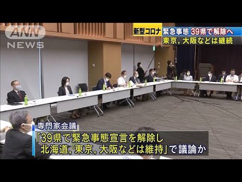専門家による会議では39の県で緊急事態宣言を解除する一方、北海道や東京、大阪などでは引き続き維持するという議論が行われたとみられます。緊急事態宣言の解除にあたっては「過去1週間の感染者数が人口10万人あたり0.5人未満」という基準が目安の一つとなる見通しです。この後、有識者による会議を経て夕方の政府対策本部で正式に決定する予定で、安倍総理大臣が記者会見を開いて説明します。