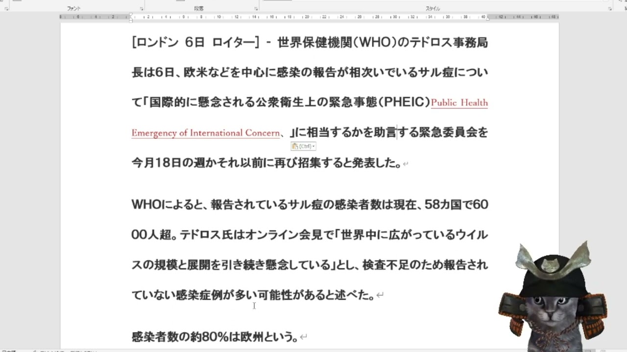 WHOサル痘緊急招集および緊急事態宣言の検討