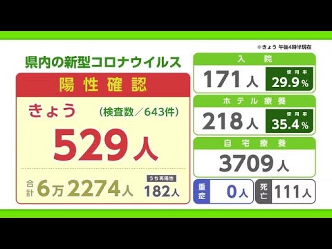 県は10日、新たに643件の検査があり、先週の日曜日より330多い529人の新型コロナ陽性が確認されたと発表しました。