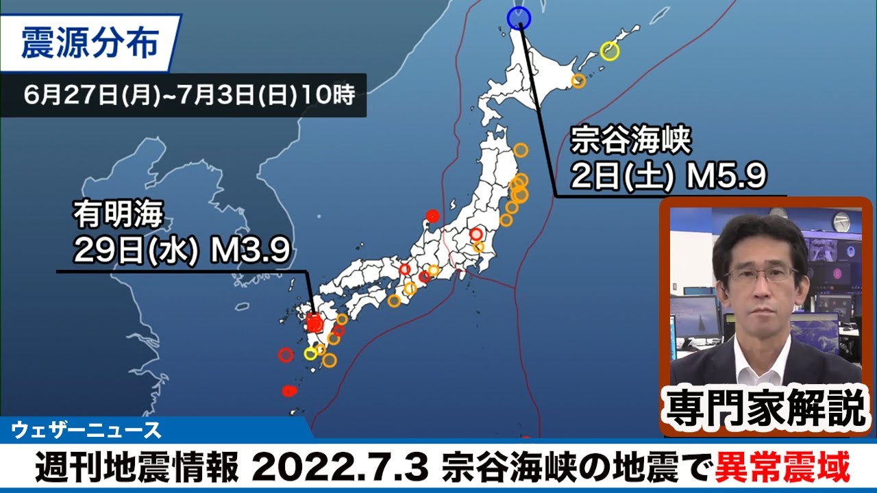この1週間で国内で観測された有感地震の回数は前週よりも少ない水準です。