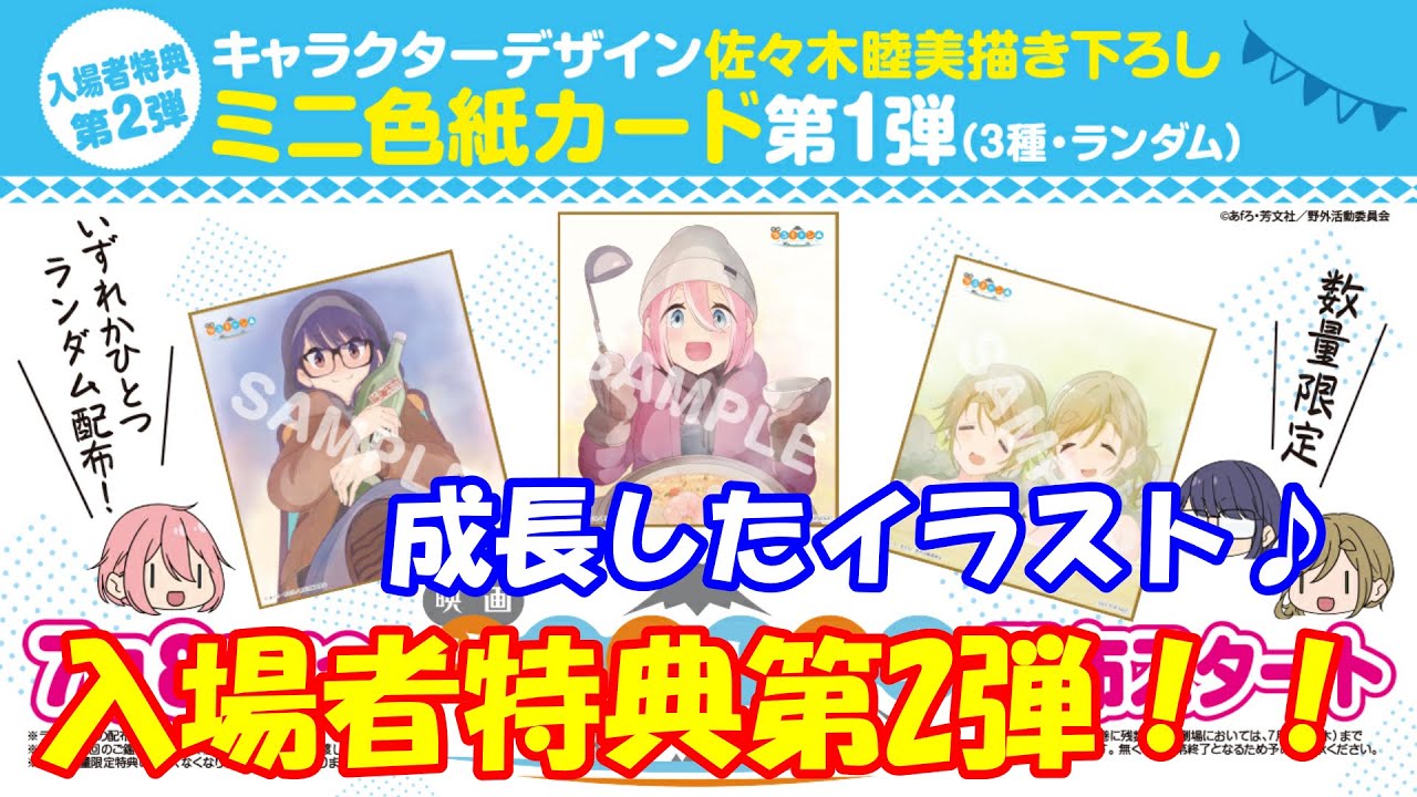 Share Facebook Twitter Pinterest LinkedIn ▼映画「ゆるキャン△」入場者特典第2弾 “キャラクターデザイン佐々木睦美描き下ろし” ミニ色紙カード 第1弾(3種・ランダム) 【配布期間】7月8日(金)〜 7月14日(木) #ゆるキャン #yurucamp #アニメグッズ ゆるキャン△2劇場版