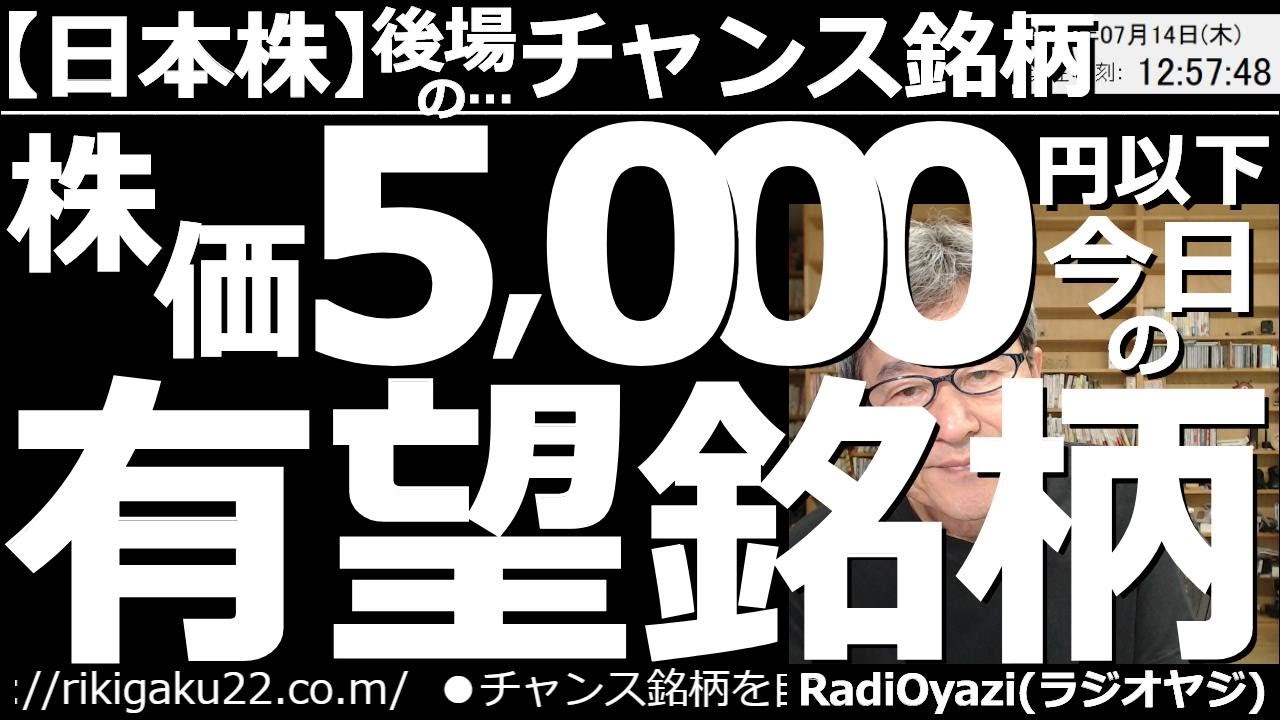 2022年7月14日(木)の「日本株-後場のチャンス銘柄」です。