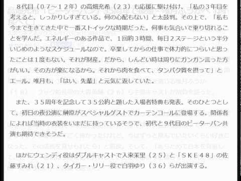 ほかにウェンディ役はダブルキャストで入來茉里(25)と「SKE48」の佐藤すみれ(21)、タイガー・リリー役で白羽ゆり(36)らが出演する。