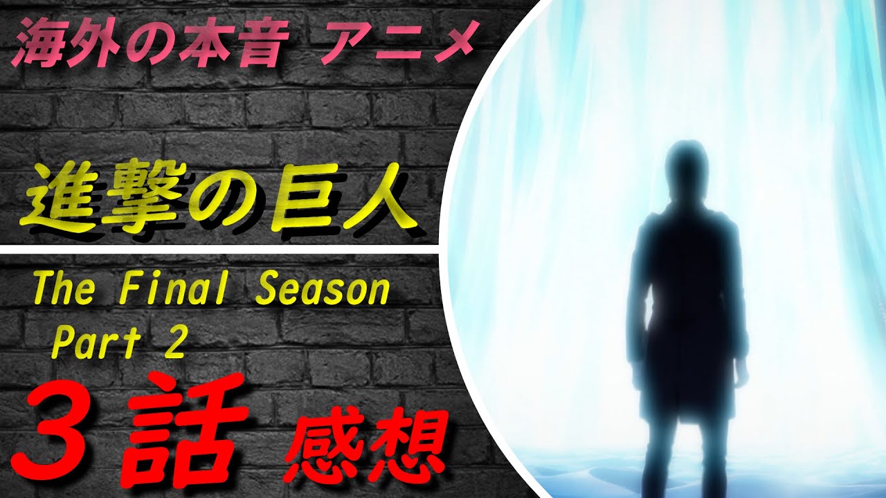 海外雑談スレの「進撃の巨人 The Final Season Part 2 3話 感想」を翻訳してみました。 励みになりますので、チャンネル登録お願いします。※コメントに関連した視聴者間のトラブルにつきましては、一切関知致しませんので、当事者間での解決を願います。また、誹謗中傷など他者に不快感を与える不適切な発言やそれに準ずる行為の一切を禁じております。 #海外の反応 #アニメ #進撃の巨人 アニメまとめリアクション感想日本海外海外の反応海外の本音漫画翻訳進撃の巨人 The Final Season Part 2