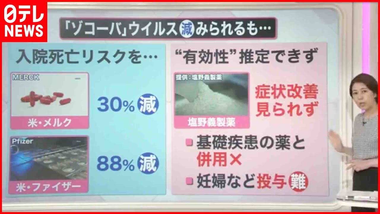 それに比べると、塩野義製薬の「ゾコーバ」では症状の改善に効果がみられないため、有効性があると推定するには至らなかったということです。ほかにも、基礎疾患の薬との併用ができないことや、妊婦などに投与が難しいことも、承認が見送られた背景にあります。