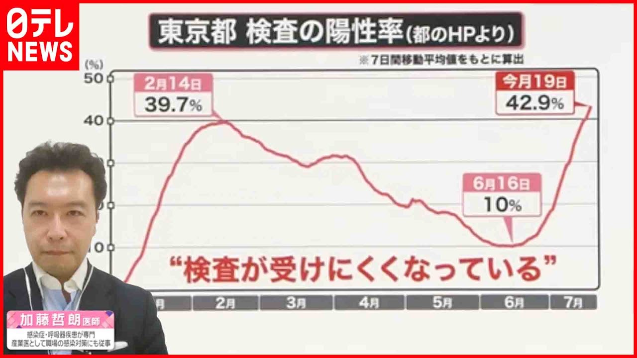 21日、東京の新型コロナウイルスの新規感染者は、過去最多の3万1878人でした。感染者の増加とともに検査の陽性率も上がり、19日は42.9%と第6波の頃を上回り、過去最高となっています。