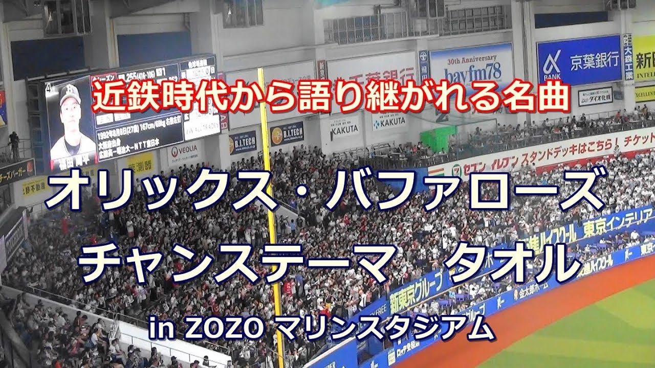 2019年8月31日 千葉ロッテマリーンズ vs オリックス・バファローズ 20回戦 5回表 (ファンファーレ) 1・2・3・4!(前奏) ワッショイワッショイ ワッショイワッショイ勢いだつなげ続け 山をはり 一か八か そこだ打て 手を出せ バット振ったらボールは飛ぶ (選手名)! (選手名)! オリックスオリックス・バファローズタオルチャンステーマチャンテバファローズファンファーレが鳴り響くプロ野球応援応援歌野球