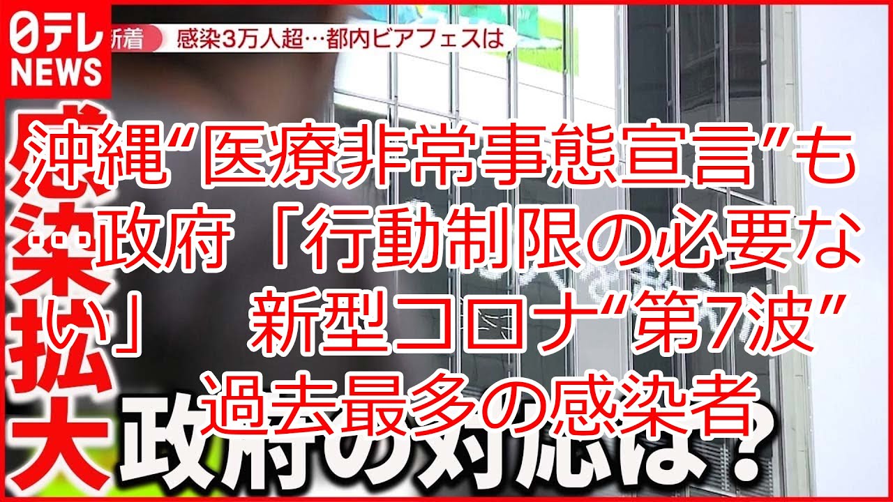 Share Facebook Twitter Pinterest LinkedIn 【最新ニュース】沖縄“医療非常事態宣言”も…政府「行動制限の必要ない」 新型コロナ“第7波” 過去最多の感染者。一月万冊 医療非常事態宣言