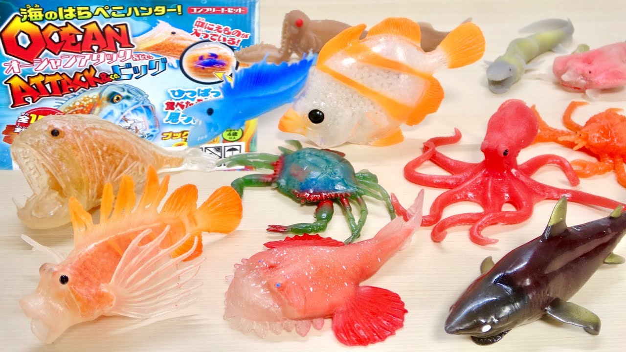 デアゴスティーニ オーシャンアタック&Co.ビッグ 15袋 コンプリートBOXを開封!面白い形の魚が 伸びて光って色が変わったりします。ブックレット付きで学びながら楽しめる商品になってます。