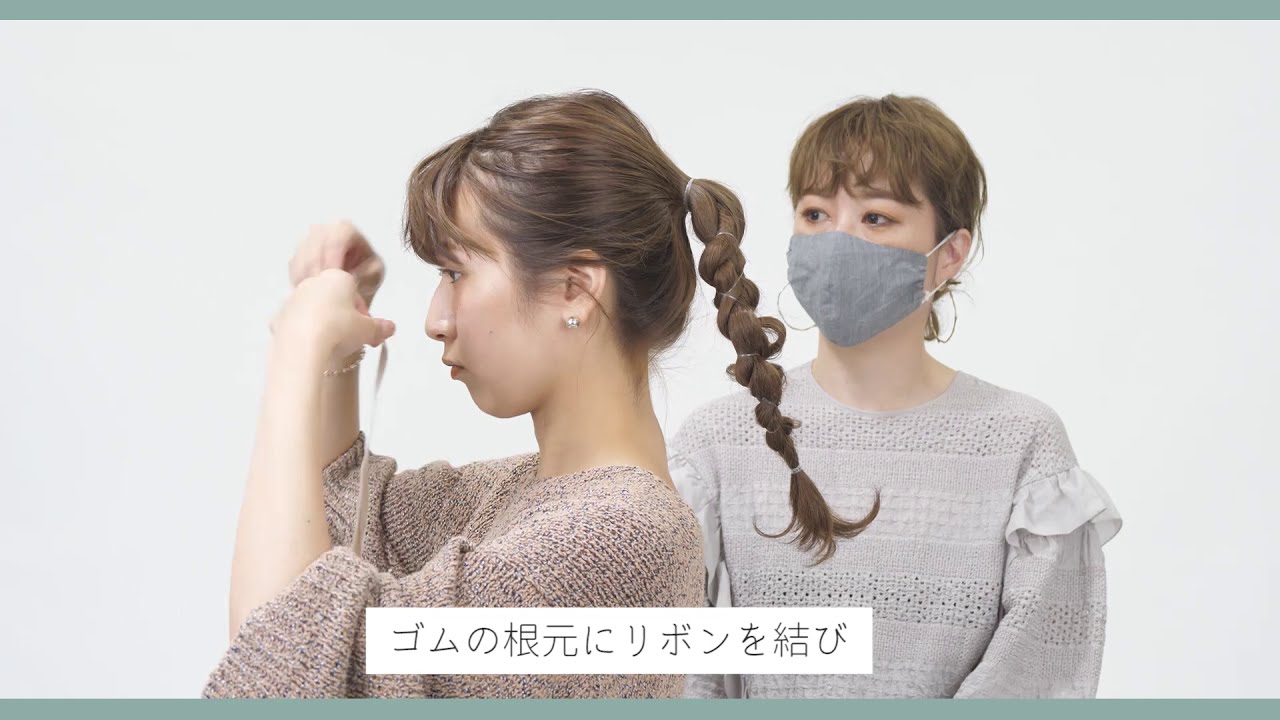 1.全体を軽く波巻きにし、耳より少し高めに一つ結び。