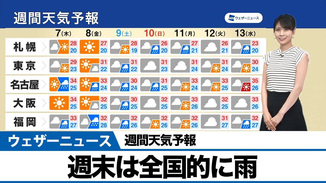 8日(金)頃になると日本海から低気圧が接近し、10日(日)にかけて通過する予想です。このため、今週末は全国的に傘の出番となる見込みです。