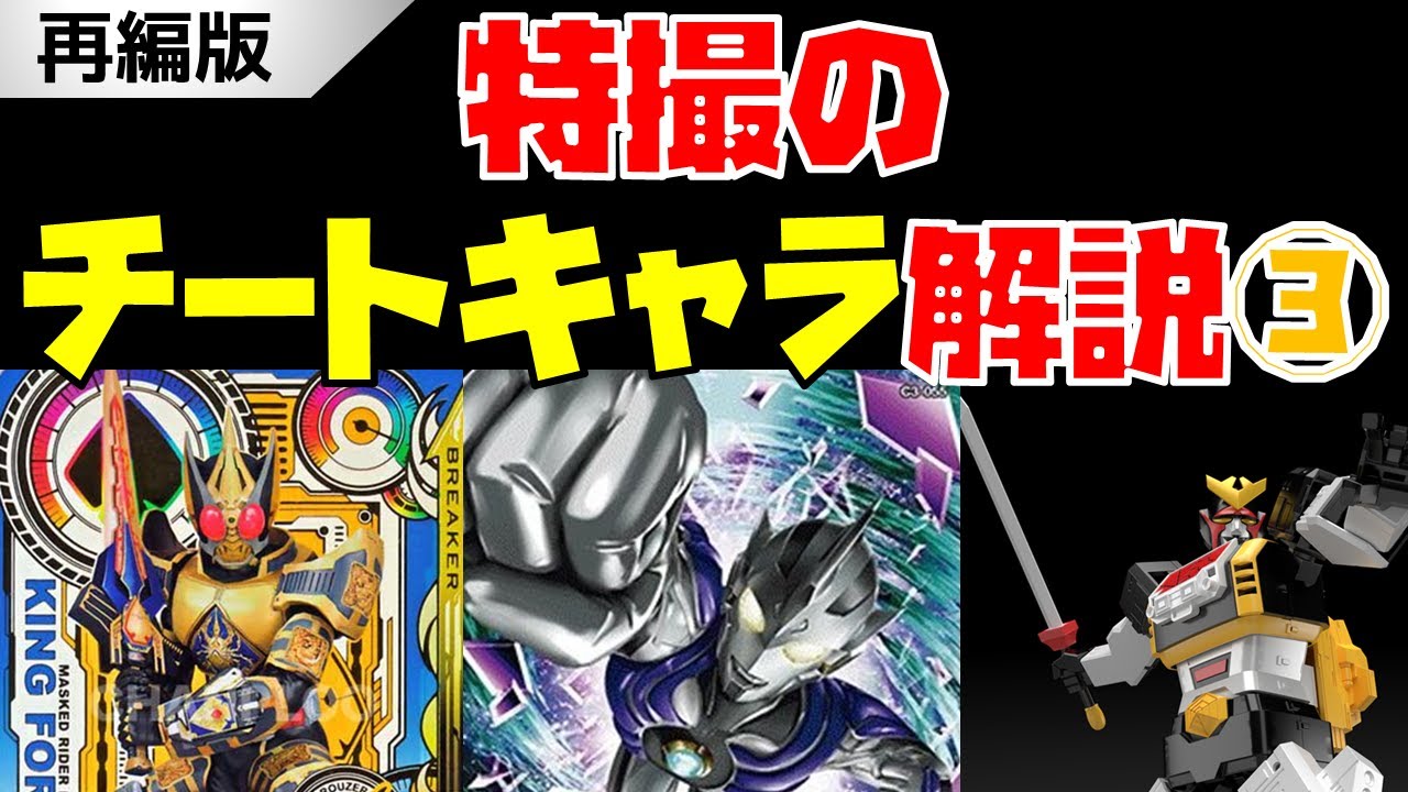 ウルトラマン、仮面ライダーなどの特撮作品において、ファンから「チート」と言われがちな強キャラを紹介する動画の第3弾です。