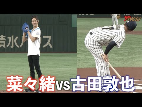 モデルで女優の菜々緒が8月1日、東京ドームで開催された『サントリードリームマッチ2022』の始球式に登場した。菜々緒の対戦相手として、バッターボックスに登場した古田敦也氏は、まさかの“菜々緒ポーズ”で球場を沸かせた。