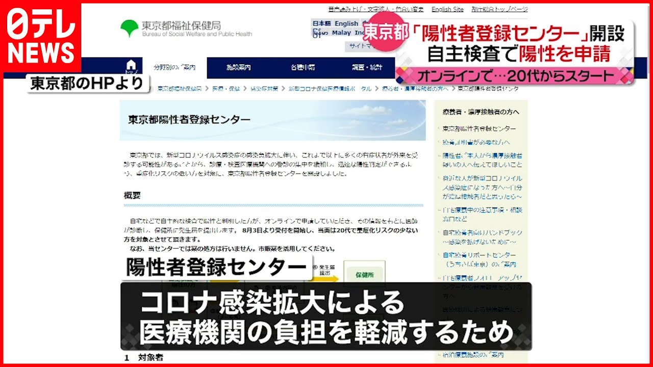 東京都は、3日、「陽性者登録センター」を開設し、自主検査などで陽性が判明した人がオンラインで申請できるようにしました。