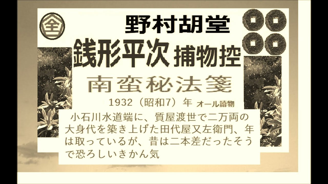 全文一挙,「兵糧丸秘聞,」,,完, 銭形平次捕物控,より,野村胡堂, 作, 朗読,by,dd,朗読苑,※著作権終了済※01:50 から、本編、そこまでは前説、教育学習小解説,