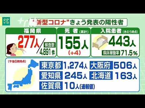 福岡県の新型コロナウイルスの検査で、20日は新たに277人が陽性だったと発表されました。