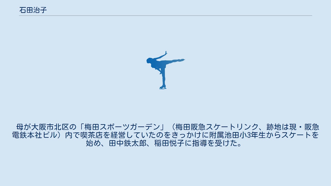 いしだあゆみと石田ゆり(なかにし礼夫人)はともに治子の実妹でフィギュアスケートを習っていた。