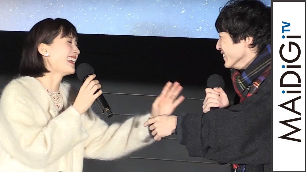 女優の綾瀬はるかさんと俳優の坂口健太郎さんが1月29日、東京スカイツリータウン(東京都墨田区)の「バレンタイン点灯式」に出席した。2人は2月10日公開の映画「今夜、ロマンス劇場で」(武内英樹監督)に出演。綾瀬さんの出演シーンの中から、好きな場面を聞かれた坂口さんが「マジックアワーのシーンで、太陽の位置がちょうどよく綾瀬さんを照らしたとき美しかった」と力説したが、綾瀬さんは「……聞いてなかった(笑い)」と天然っぷりを発揮していた。