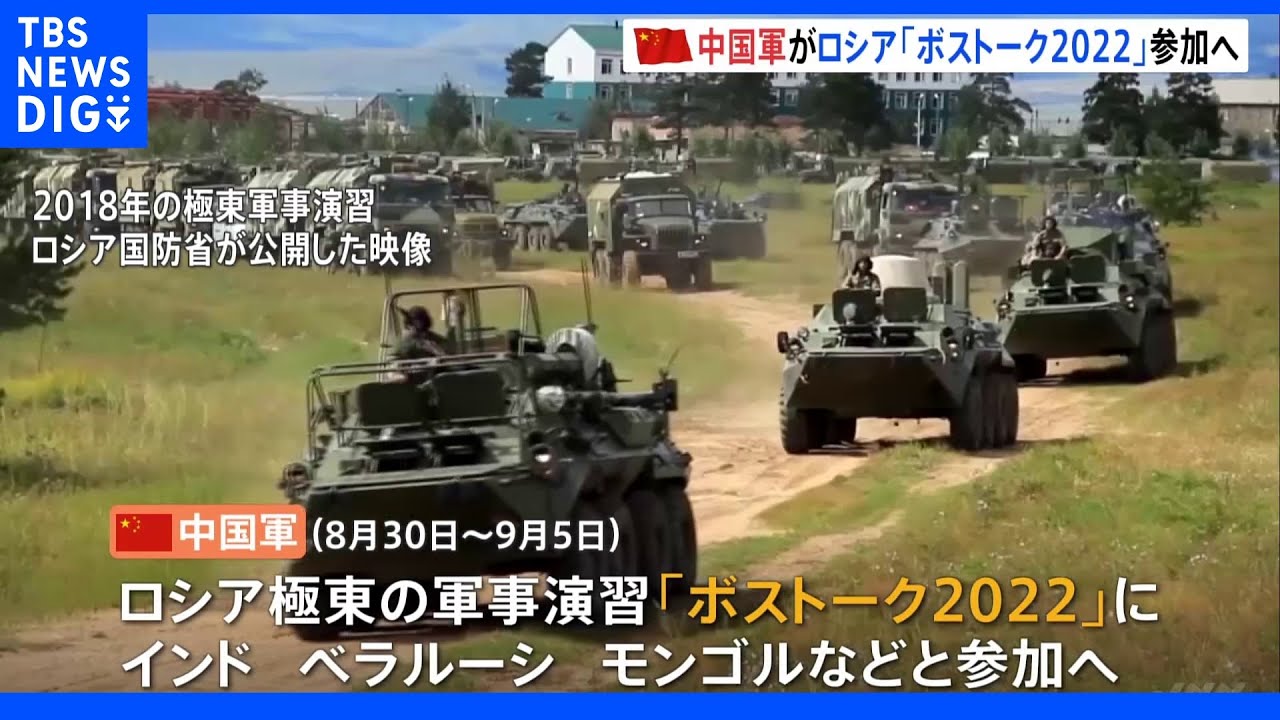 中国国防省などによりますと、8月30日から9月5日にロシア極東地方で行われる軍事演習「ボストーク2022」にインド、ベラルーシ、モンゴルなどとともに中国軍が参加するということです。