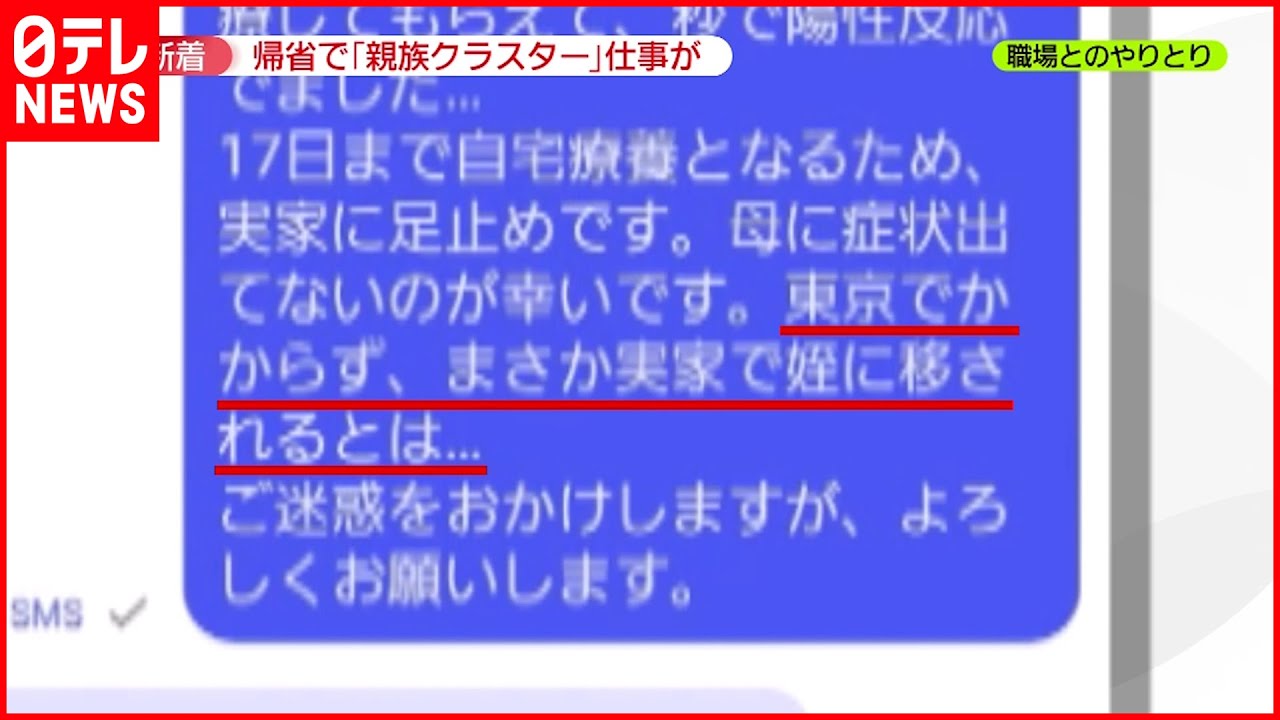 新型コロナウイルスの新規感染者が連日、過去最多を更新しています。19日、全国の感染者は初めて26万人を超えました。中には帰省時に感染したため、実家で療養生活を続けることとなり、予定していた仕事復帰が2週間先延ばしになった人も…。