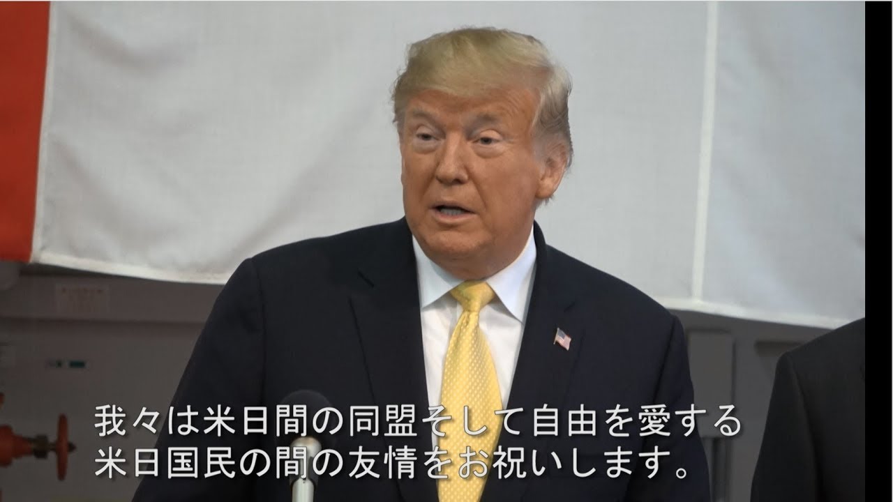 令和元年5月28日、安倍総理とアメリカ合衆国のドナルド・トランプ大統領夫妻が護衛艦「かが」を訪問し、自衛隊及び在日米軍の隊員に対して激励を行った動画です。