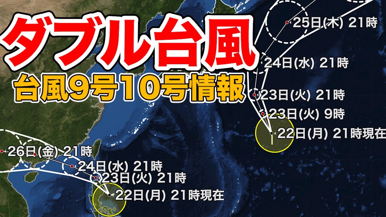 8月22日(月)12時にフィリピンの東の熱帯低気圧が台風9号、南鳥島近海の熱帯低気圧が台風10号になりました。