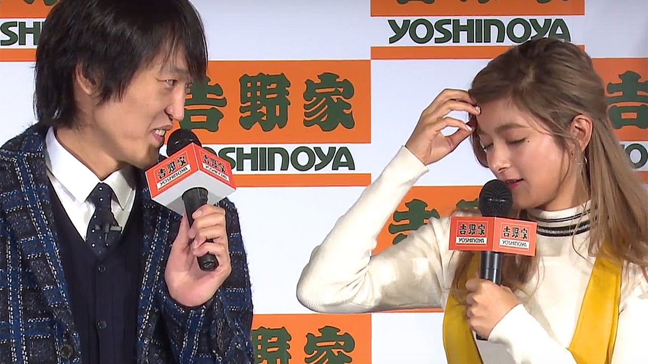 Chihara Junia of comedy duo “Chihara Kyodai” and model Rola attended the press event to release of the new CM “Gyusuki nabezen” of Yoshinoya in Tokyo on October 13th.