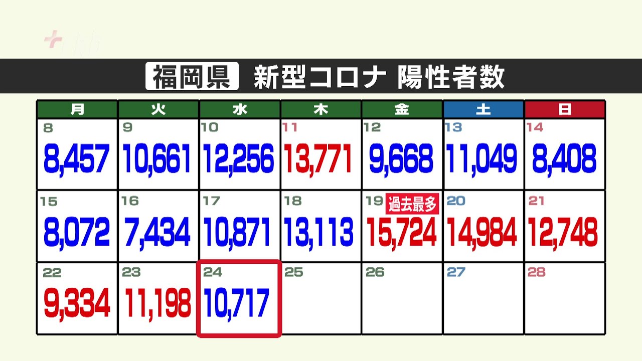 福岡県では24日、新たに1万717人の陽性が確認されました。また、服部知事が濃厚接触者になったことも発表されました。