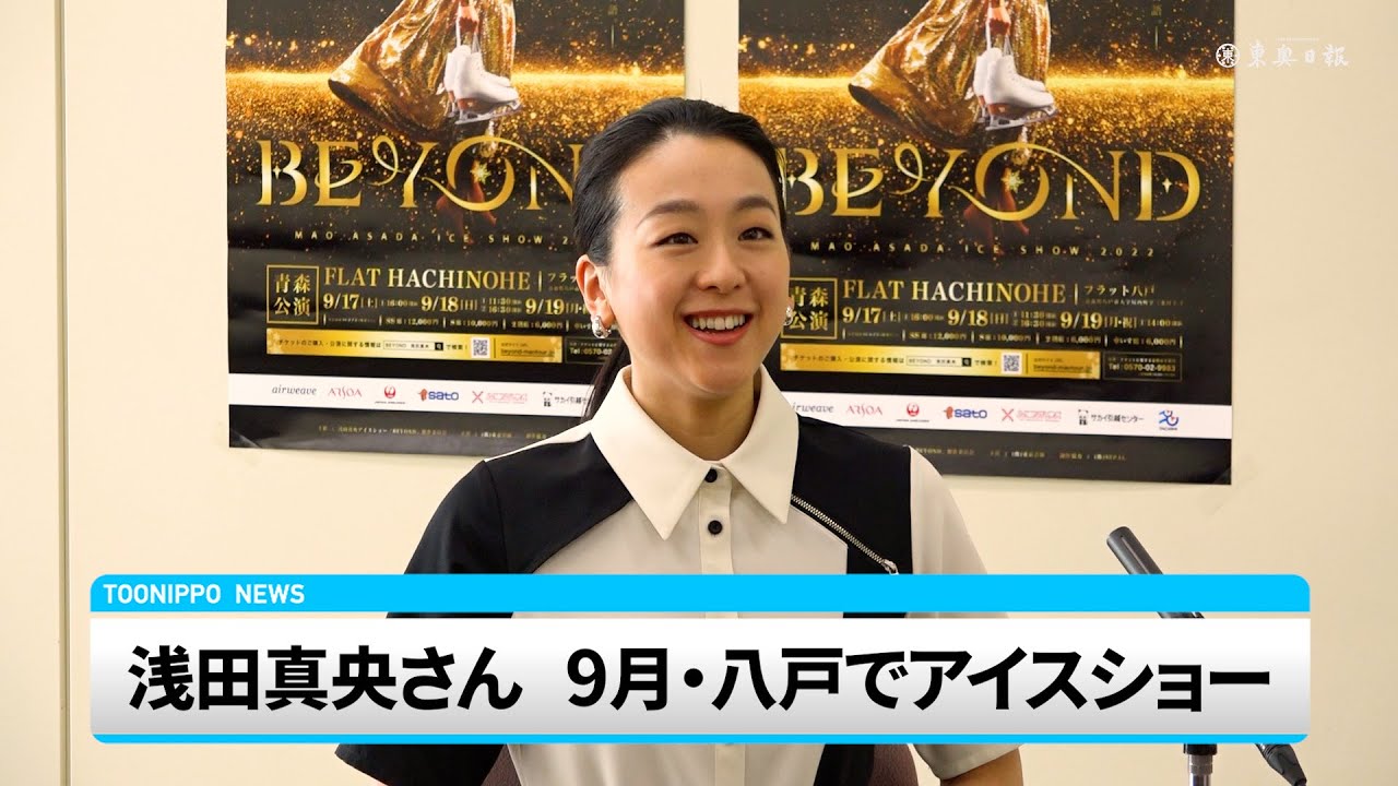 2010年バンクーバー冬季五輪銀メダリストで、17年の競技引退後はプロフィギュアスケーターとして活動する浅田真央さん(31)が29日、青森市の東奥日報社を訪れ、9月17~19日に八戸市で開催するアイスショー「BEYOND」への意気込みを語った。自身が総合演出を務める2度目のショーで、タイトルは英語で「超える」との意味。「全ての演目一つ一つにとてもこだわった。前回以上のものを皆さんにお届けしたい」と熱い思いを明かした。