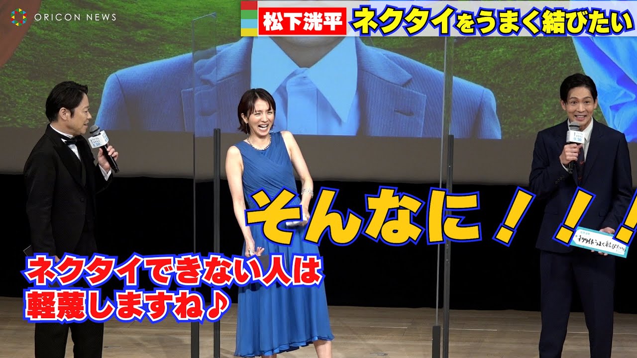 これにMCから「阿部さんアドバイスありますか?」と突然振られ、阿部は「ネクタイ?」と困り顔。間をおいて「ブレザーの学校だったので、ネクタイは絶対で。ネクタイができない人は軽蔑します」と厳しくツッコむと、松下は「え!」と動揺し、笑いを誘った。