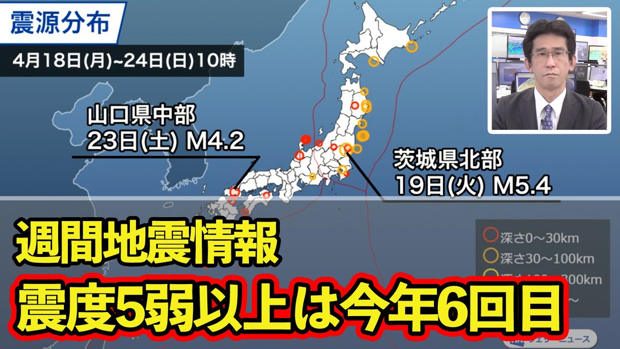 この1週間で国内で観測された地震回数は前週とあまり変わらない水準です。この期間は関東から北日本の太平洋側で地震が目立ち、西日本も内陸部の所々で発生。