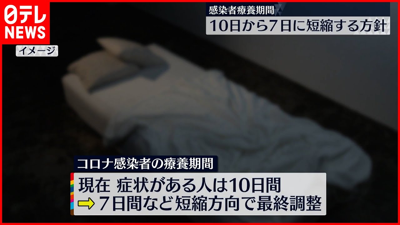 政府関係者などによりますと、新型コロナ感染者の療養期間について政府は現在、症状がある人は10日間となっているものを7日間にするなど、短縮する方向で最終調整しています。6日にも関係閣僚で協議した上で、正式に決定する方針です。